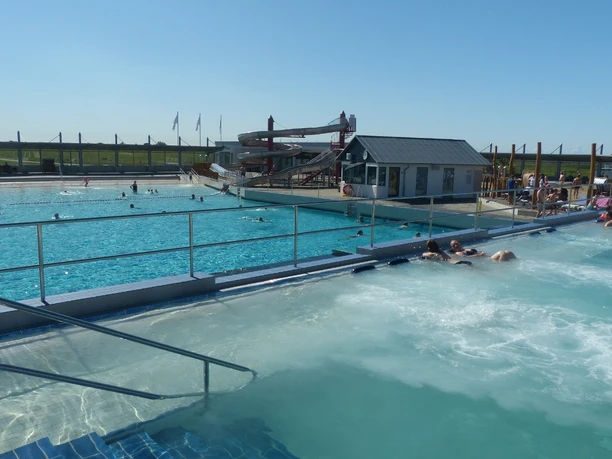 Durch das Wellenfreibad Watt'n Bad ist zu jeder Zeit das tidenunabhängige Baden möglich: Bei Flut im Wattenmeer und bei Ebbe kann man in das Wellenbecken des Watt'n Bades springen oder auf den komfortablen Unterwasserliegen entspannen. Für die Kleinen gibt es liebevoll gestaltete Kinderbecken im Innen- und Außenbereich, in denen sie nach Herzenslust planschen können. Auch Sonnenliegen und Strandkörbe stehen zur Verfügung, um eine Pause einzulegen.