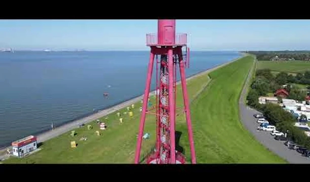 Von zwei Aussichtsplattformen in 18,40 und 34,50 Meter Höhe blickt man auf den Nationalpark Niedersächsisches Wattenmeer, die einmalige in das Meer hinein gerückte Marschenlandschaft Butjadingens und auf die gegenüberliegende Hafen- und Marinestadt Wilhelmshaven mit dem Jade-Weser-Port.